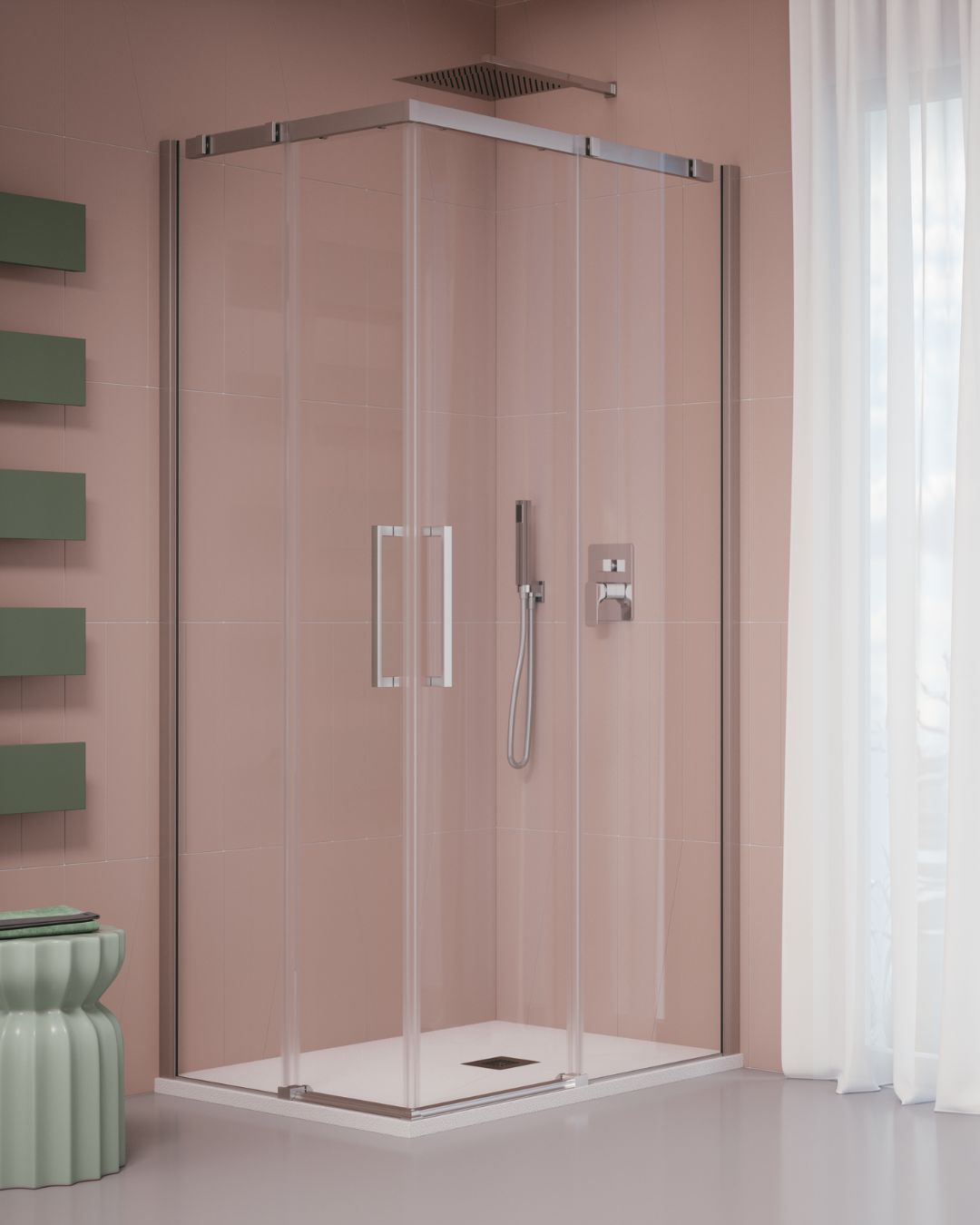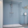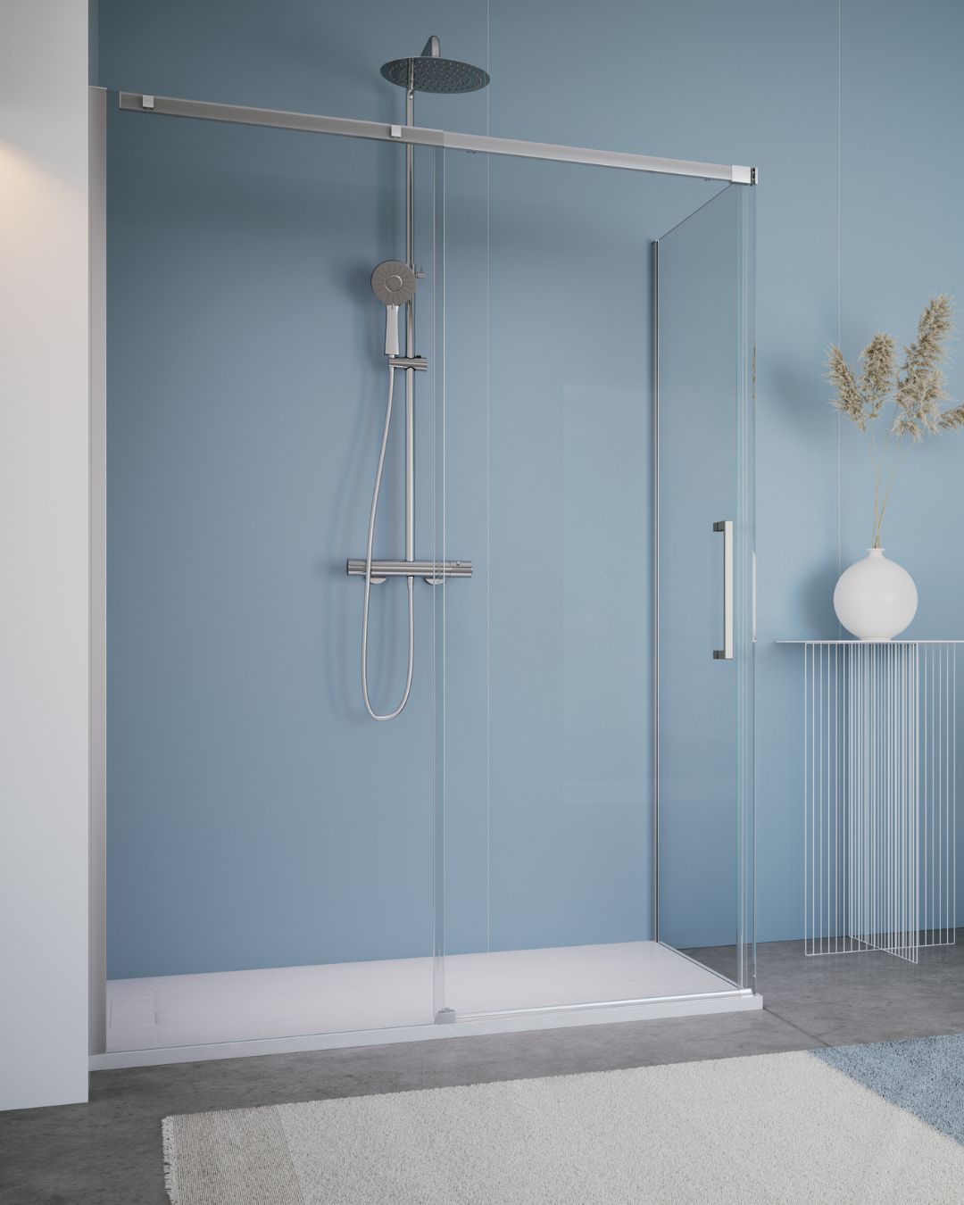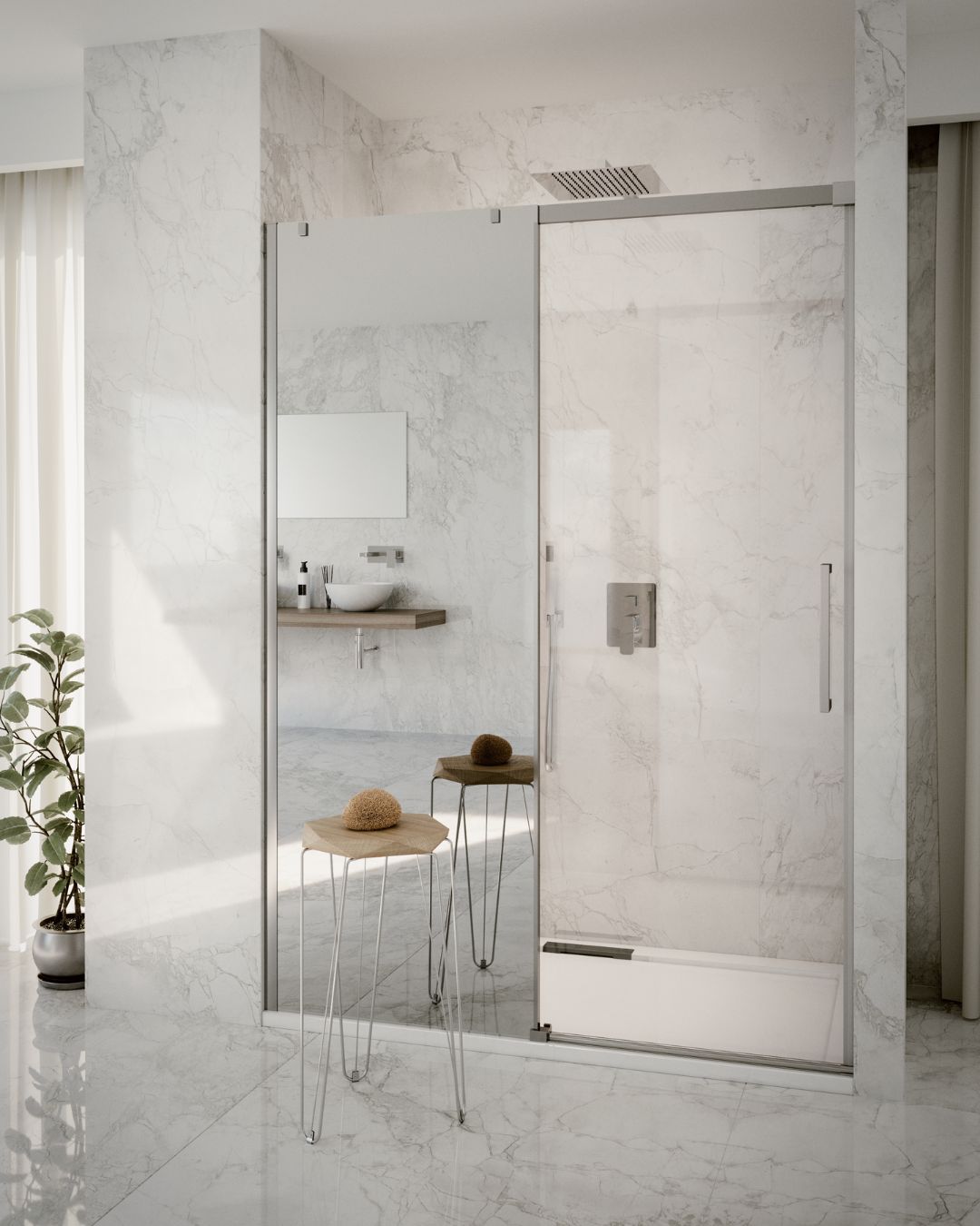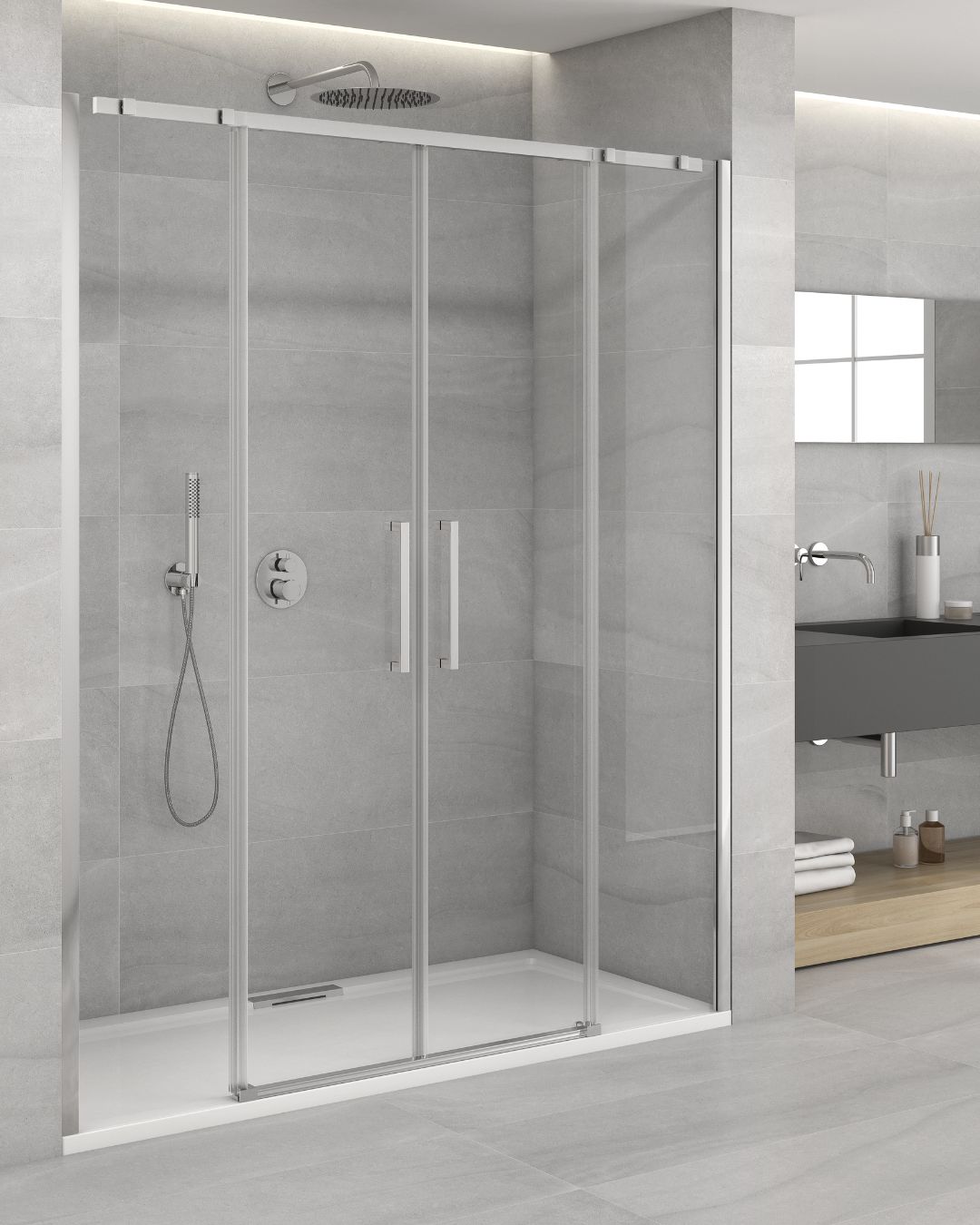 La Collezione “VALLEY” è realizzata con cristalli temperati da mm. 6, altezza mm. 2000. Su tutti i cristalli viene applicato il trattamento “Easy Clean Glass” sia nella parte interna che esterna, con passaggio al forno ad alta temperatura, per garantire maggiore durata. Le porte vengono confezionate in unica scatola, e così anche i pannelli fissi laterali, tutti gli elementi sono reversibili. La Collezione “VALLEY” non è predisposta all’installazione del terzo lato. Se necessario, per particolari problemi di installazione, è possibile accorciare la barra superiore di scorrimento da mm. 10 a mm. 50, in questo caso, la porta risulterà sovrapposta al fisso in linea dell’equivalente tagliato. Su richiesta, la porta della collezione “VALLEY” può essere fornita con il fisso in linea a specchio, una realizzazione innovativa, particolarmente apprezzata dal pubblico femminile che riconosce in questa soluzione un valido accessorio, di dimensioni tali da poter specchiare l’intera persona, una possibilità spesso mancante nell’unità abitativa .